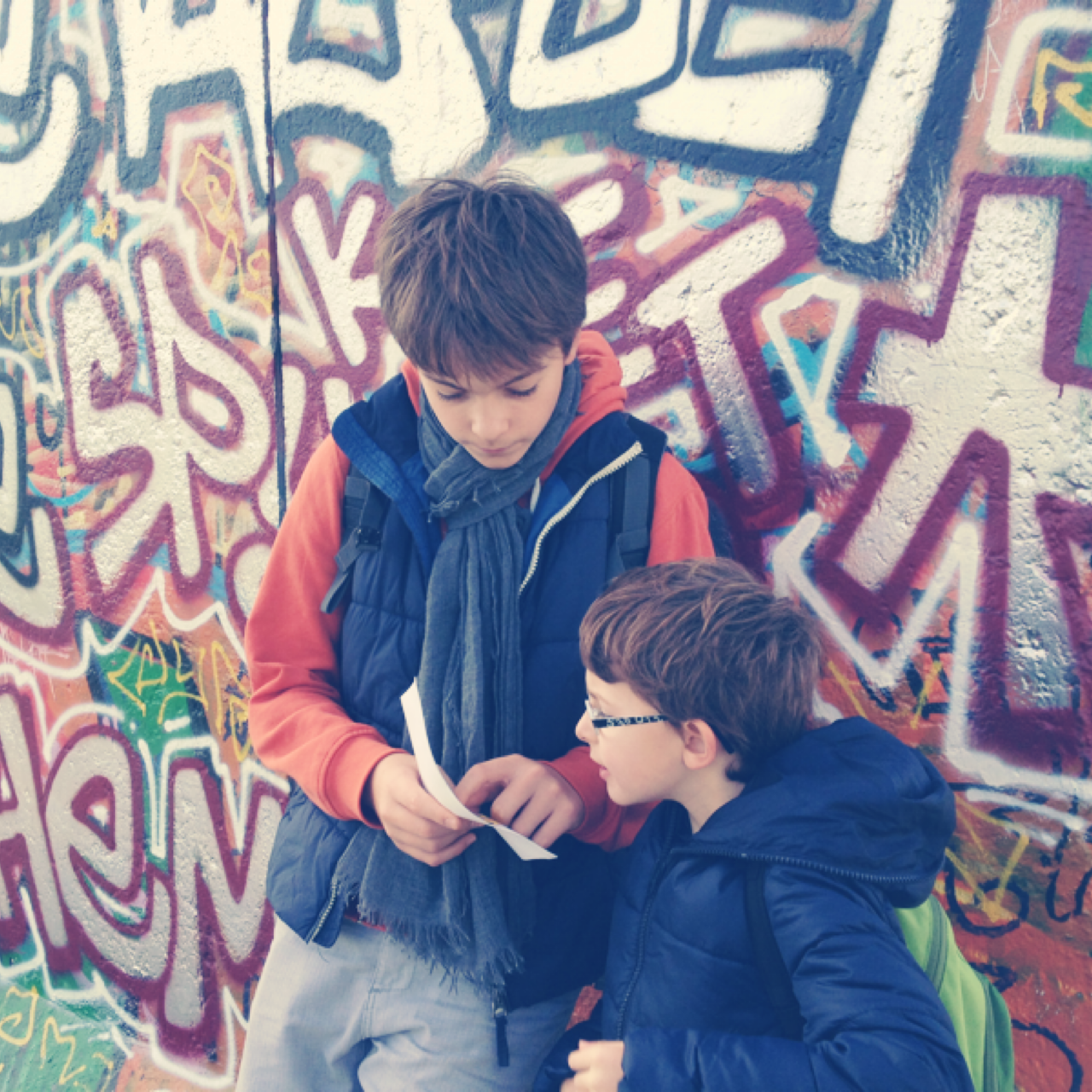 # jour 3. longer la east side gallery, puis porte de brandebourg, check point charlie, le musée du mur. quelques incontournables. une belle rando dans la ville. une longue pause dans un agréable café de la bergmannstrasse l'après-midi pour écrire nos cartes postales et reposer nos pieds !
